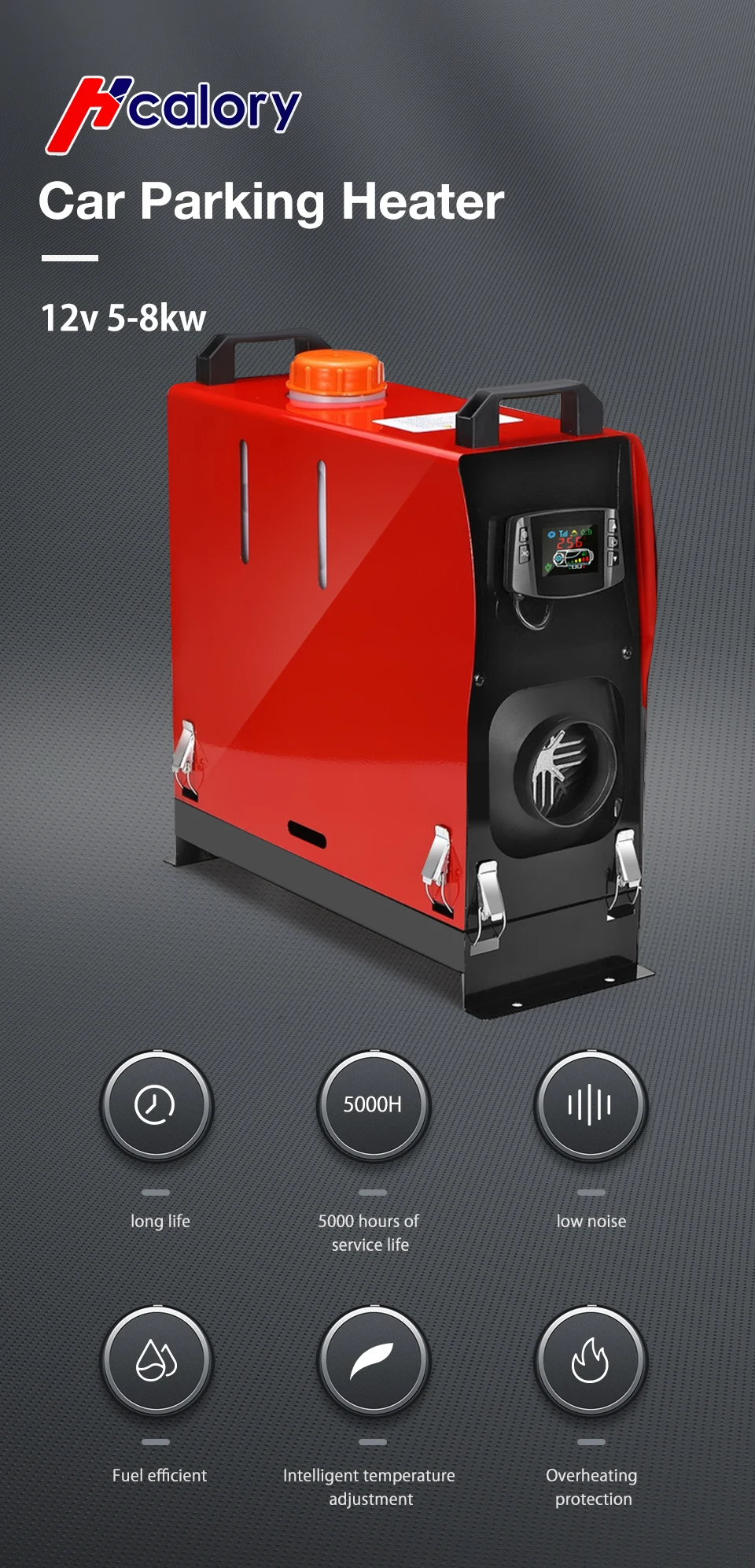 Hcalory All In One 1-8kW Air diesels Heater Red 8KW 12V One Hole Car Heater For Trucks Motor-Homes Boats Bus+LCD key Switch