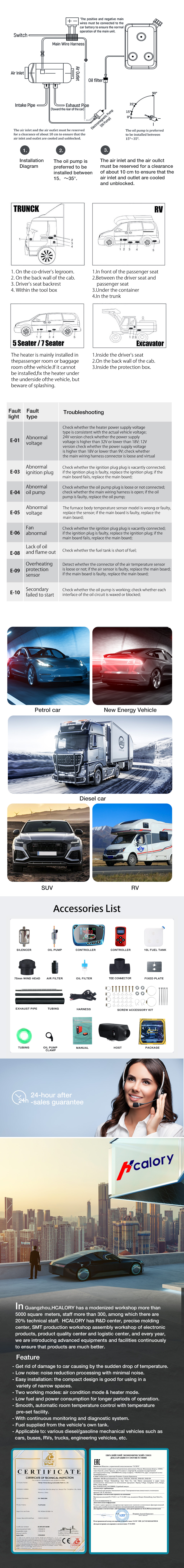Related Products for Automobiles, Parts & Accessories and Hcalory Aluminum Alloy Car Heater 2KW / 5KW 12V One Hole Car Heater For Trucks Motor-Home Boat Bus LCD key Switch Silencer