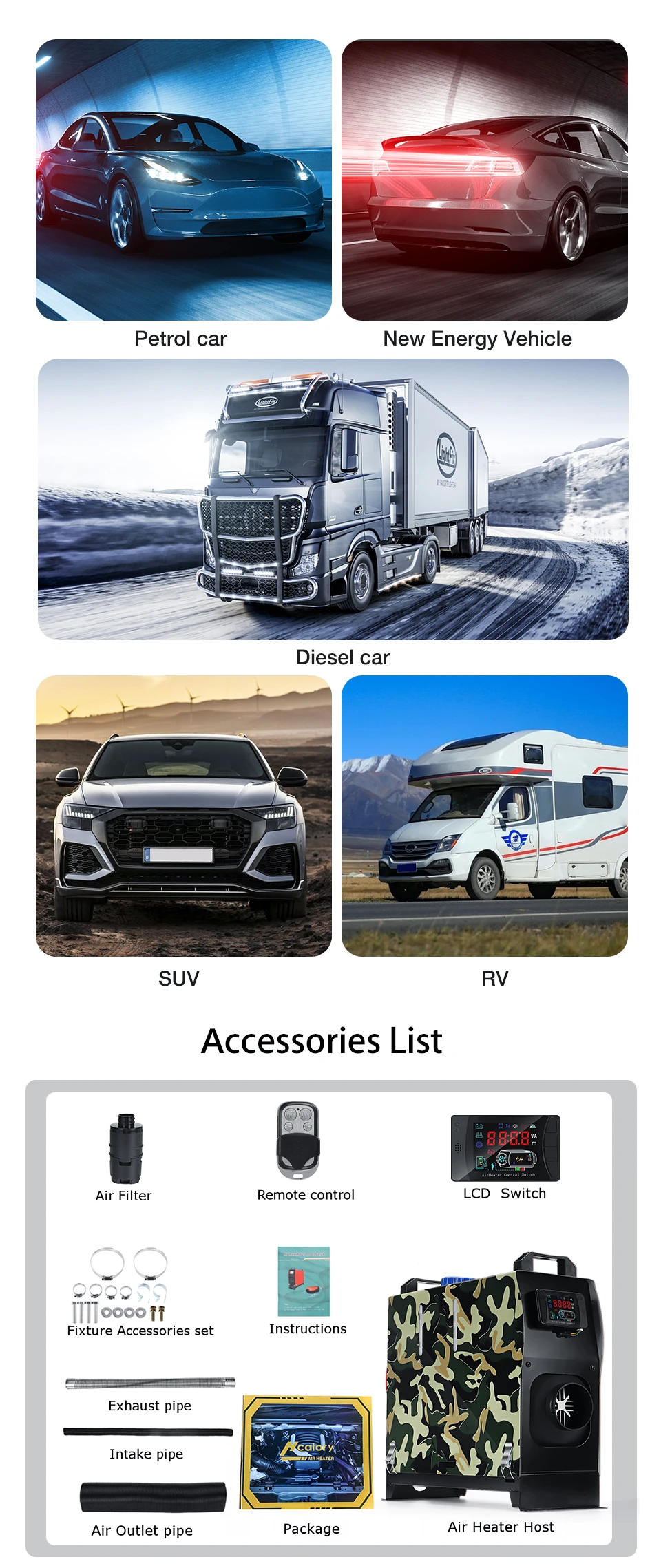Related Products for Automobiles, Parts & Accessories and Hcalory Car Heater All In One Air diesels Heater Camouflage 8KW 12V One Hole Car Heater for Trucks Motor+LCD key Switch