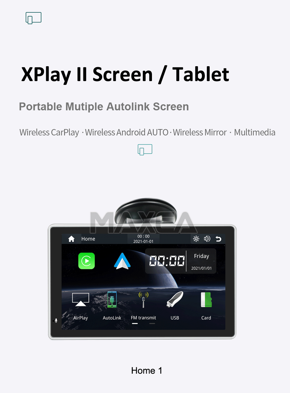 MAXCA XPlay II Portable Wireless Carplay Screen 7 inch Apple Airplay Wireless Android Auto Autolink Multimedia Player