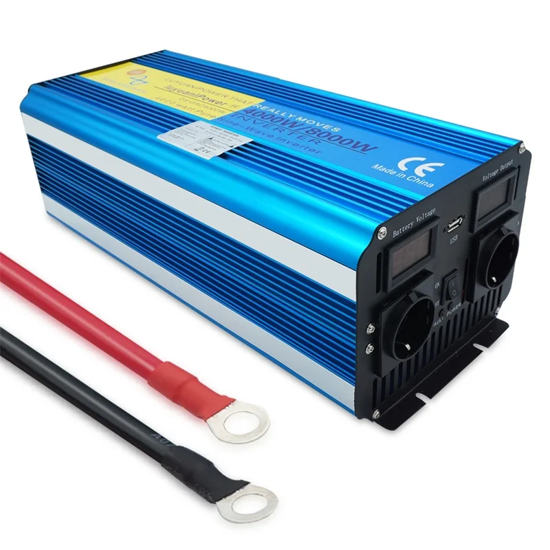 Dual LED Display 8000W pure sine wave power inverter DC 12V/24V TO AC 220V/230V/240V with 3.1A USB dual EU socket