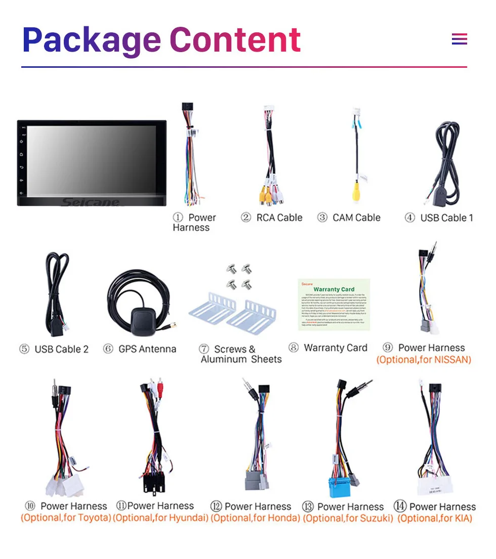 3G&WiFi/App download/3D Navigation/Radio Tuner/Bluetooth/Dual Zone/ File Management/HD 1080P Video/Steering Wheel Control/Mirror Link/OBD2/DVR/Backup camera/MP3/USB/SD etc.