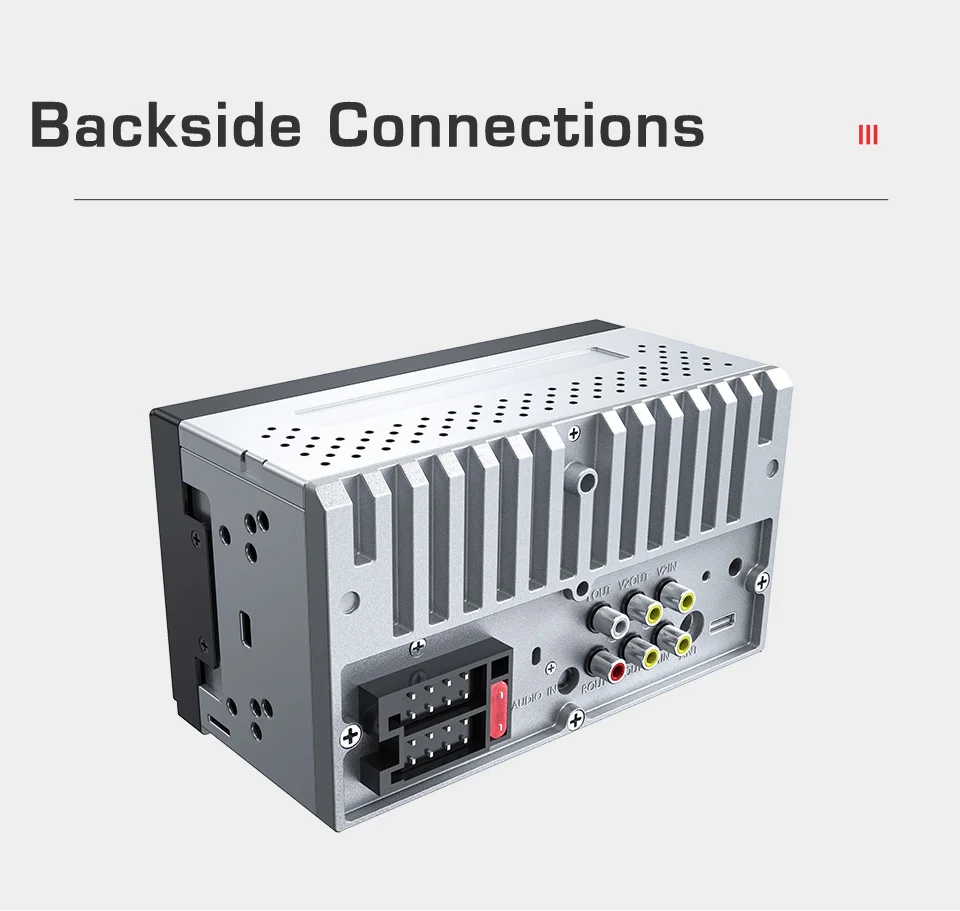 Optional accessories: rear view camera, microphone, steering wheel remote control, USB wireless interconnection